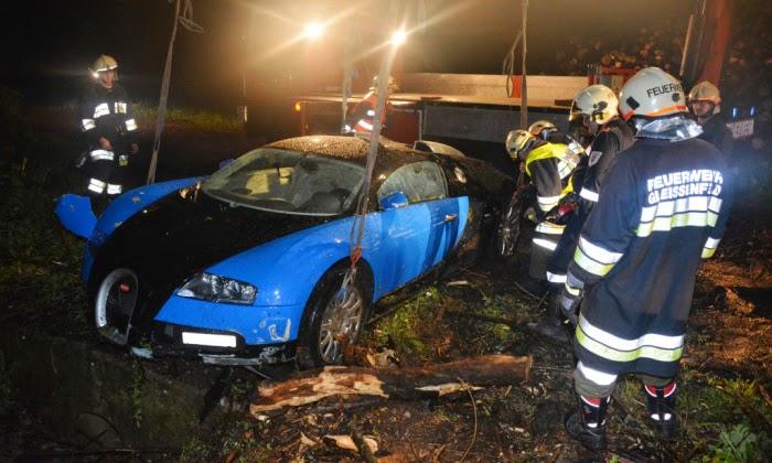 Z powodu silnych opadów deszczu prędkość ograniczono do 65 km/h. Kierowca prawdopodobnie nie dostosował prędkości do warunków atmosferycznych i wpadł w poślizg. Auto wypadło z drogi gdzieś pomiędzy miastami Seebenstein i Grimmenstein. Akcja wyciągania Bugatti Veyron trwała półtorej godziny. Na szczęście kierowca nie doznał żadnych poważnych obrażeń.