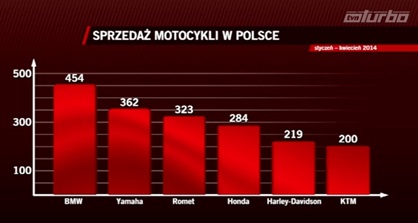 Wiele osób od dzieciństwa marzyło o tym, żeby poczuć wiatr we włosach. Dziś wielu stać na realizację snu sprzed lat. Jak więc wygląda dziś ilość kupowanych przez Polaków motocykli?Od kilku lat można zaobserwować, że na drogach naszego kraju pojawia się coraz więcej motocykli. Ich liczba stale rośnie, choć nie tak szybko, jak w przypadku samochodów. W 2010 roku zanotowano milion zarejestrwanych motocykli. Znaczący wzrost, sięgający nawet 60 %, odnotowali w tym roku praktycznie wszyscy importerzy tych kultowych wręcz pojazdów. Warto zauważyć, że zainteresowanie to dotyczy w dużej mierze motocykli z wyższej półki, takich jak Harley Davidson. Najtańsze z nowych modeli kupić można już za 30 000 zł. Co nie zmienia faktu, że Polacy kupują również te za 130 000 zł. Największy wzrost sprzedaży zanotowała marka BMW, której najpopularniejsze obecnie modele to te z dużymi silnikami o pojemnościach od 700 ccm do 1200 ccm.