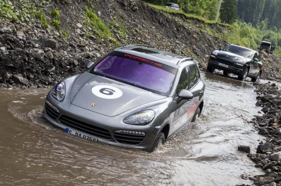Podczas gdy większość tego typu pojazdów nie zjeżdża z utwardzonych dróg, Porsche Cayenne poddawane jest ciężkiej przeprawie.