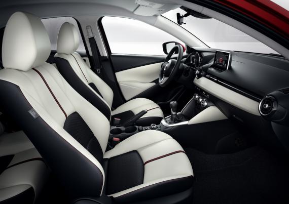Mazda2 wyznacza nowe standardy w segmencie małych samochodów, oferując bogate wyposażenie (m.in. MZD Connect – multimedialny system rozrywki i łączności), a także po raz pierwszy w klasie wyświetlacz przezierny Head-up) oraz najnowsze systemy bezpieczeństwa czynnego, tj. monitorowanie martwego pola, wspomaganie hamowania w ruchu miejskim, automatyczne przełączanie świateł drogowych /mijania czy system ostrzegania przed niezamierzoną zmianą pasa ruchu.