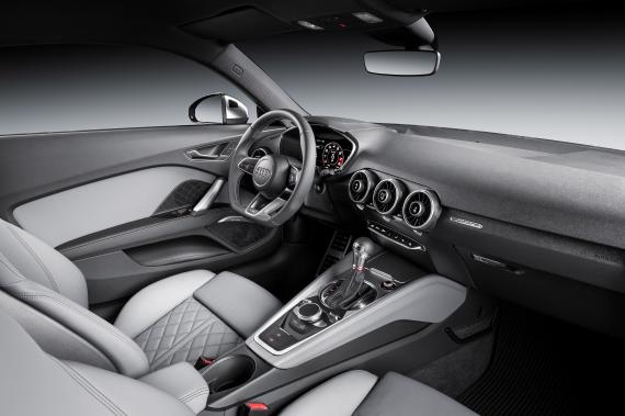 Dzięki lekkiemu przebiegowi linii sprawiających wrażenie unoszących się w powietrzu, wnętrze pojazdu doskonale oddaje sportowy charakter nowych Audi TT i TTS. Głównym założeniem jest tu skierowanie wszystkich przyrządów w stronę kierowcy. Płynne, korespondujące ze sobą kształty, wpływają na wygląd konsoli tunelu środkowego i obudowy drzwi. Patrząc z góry, smukła tablica rozdzielcza przypomina powierzchnię skrzydła samolotu. Okrągłe wyloty powietrza, element charakterystyczny dla modeli TT, przypominają silniki lotnicze.