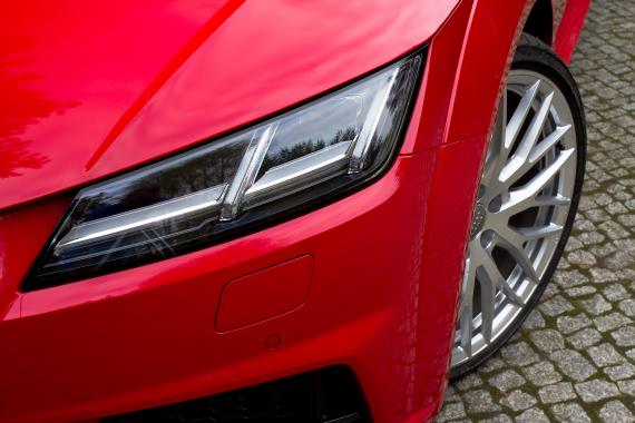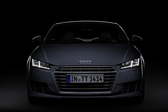 Z przodu nowego Audi TT dominują linie poziome. Pojedynczo obramowana osłona chłodnicy Singleframe jest szeroka i płaska. Połączone ze sobą wloty powietrza ustrukturyzowano przy pomocy listew. Listwy oddzielające porządkują także reflektory, w których wyraźnie wydzielono światła do jazdy dziennej. Opcjonalnie Audi dostarcza reflektory diodowe lub reflektory diodowe Matrix LED. W przypadku tego drugiego rozwiązania, światło drogowe pochodzi z pojedynczo sterowanych, małych diod. W kierunkowskazach ze zdynamizowanym sposobem sygnalizowania sygnał świetlny przebiega zawsze od środka na zewnątrz, w kierunku skręcania, co jest dodatkową wskazówką dla innych uczestników ruchu.