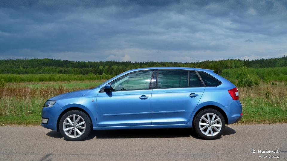 Podczas projektowania karoserii rozsądek zdecydowanie brał górę nad emocjami. Dominują proste linie i ostre załamania. Stylistyka samochodu nawiązuje do pozostałych modeli z rodziny Skody. Co więcej, mogę się założyć, iż gdyby zakryć logo, ludzie nie zainteresowani motoryzacją, nie rozpoznali by, z która marką grupy Volkswagena mają akurat do czynienia. Trzeba również przyznać, iż ten design ma swój urok. Skoda Rapid Spaceback to samochód za którym nikt nie będzie się oglądał, natomiast wyważona stylistyka sprawia, iż ciężko jest się do czegoś przyczepić, a całe auto jest miłe dla oka.