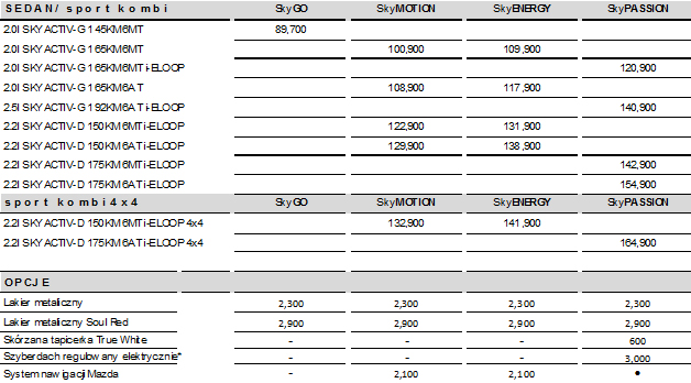 Poniżej przedstawiamy ceny modelu Mazda6 z rocznika 2015: